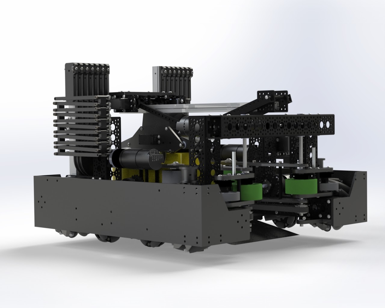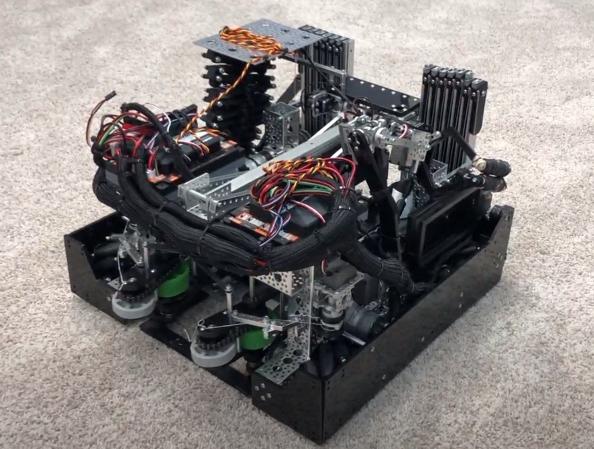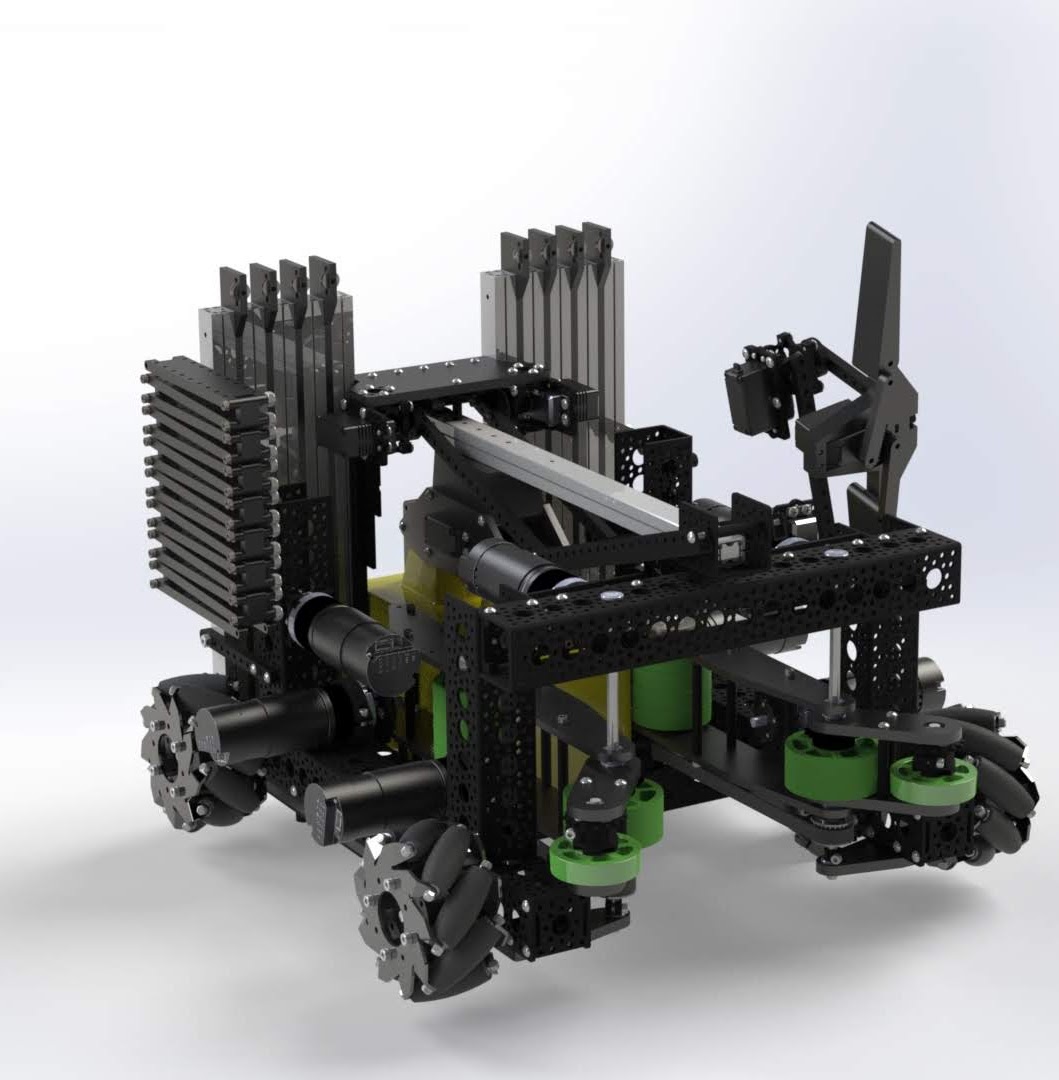 Led Juniper Robotics team 16449 (13 members) as Founder and Captain during the 2019-2020 FIRST Tech Challenge SkyStone season. The challenge required robots to move yellow blocks across the field, stack them on platforms, and reposition the platform for additional points. The robot went through 3 complete redesigns and consisted of over 4,500 parts using kit components, laser-cut, and lathed parts. Built with Java, OpenCV, odometry/localization, SolidWorks, and 3D printing.